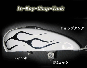 当店オリジナルのこのインキーチョップタンクは、メインキーがタンク内に隠れるよう設計されております。よってキーを抜いた状態ではキーシリンダーがタンク内に完全に隠れるため盗難、イタズラ防止に役立っています。