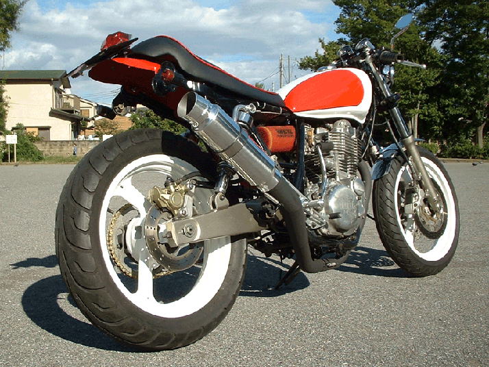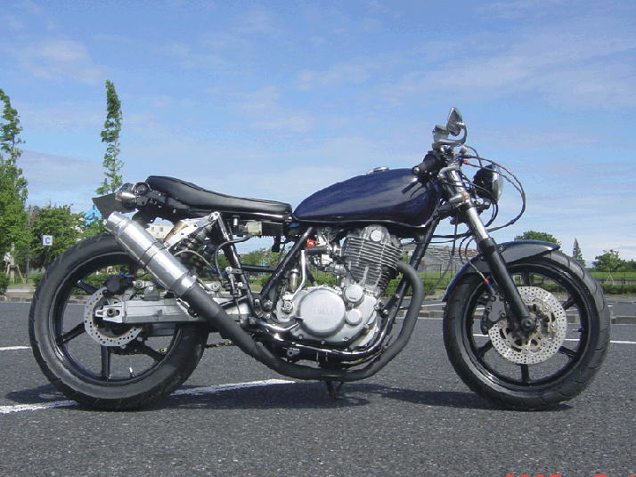 SR400/500改 (受注生産) 型式 1JR 1994~1999年式 XJR足廻り移植仕様 公認改造申請 車両価格(400cc) ¥600000くらい(税込み) ※上記は制作参考例です。 ベース車両の排気量や状態により価格は異なります。 組み込むオプションパーツによっても価格は異なります。